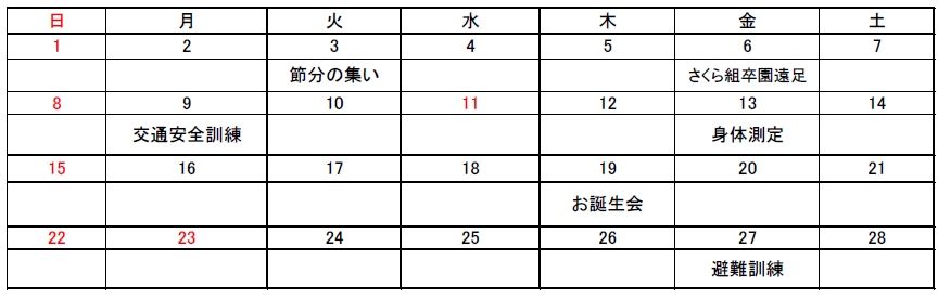 2月の行事予定